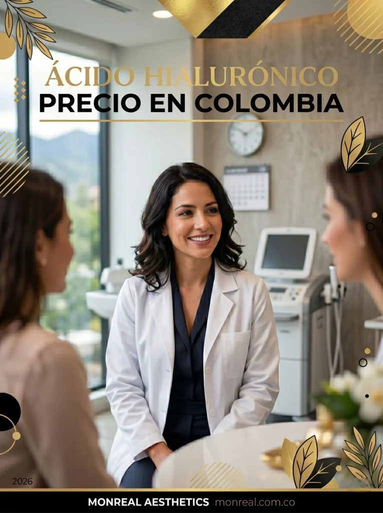 La información contenida en este artículo tiene fines exclusivamente informativos y educativos, y no reemplaza bajo ninguna circunstancia la consulta médica presencial con un profesional de la salud debidamente habilitado. Los precios mencionados son referenciales, corresponden a rangos generales del mercado colombiano a 2026 y pueden variar sin previo aviso según la marca del producto, la cantidad de ácido hialurónico utilizado, la zona a tratar, la condición clínica individual del paciente y las políticas de cada clínica.